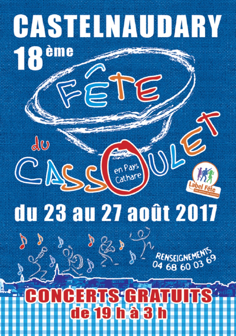 ![]() | Depuis 18 ans déjà, la Fête du Cassoulet s'est installée dans notre ville et notre région elle a su grandir et se renouveler d'années en années grâce à son comité d'organisation, ses bénévoles et l'implication des villages alentours. La Fête du Cassoulet c'est quoi ? Des Concerts Gratuits sur les 3 principales places de la ville du Jeudi au Dimanche Des Animations et des Spectacles ouverts à tous rassemblant petits et grands au cœur de la Fête Et tous les Restaurants de la ville pour déguster notre divin cassoulet ! La Fête du Cassoulet est devenue au fil des années, une manifestation emblématique pour le département de l'Aude et pour l'ensemble de la région Occitanie (Languedoc-Roussillon). |